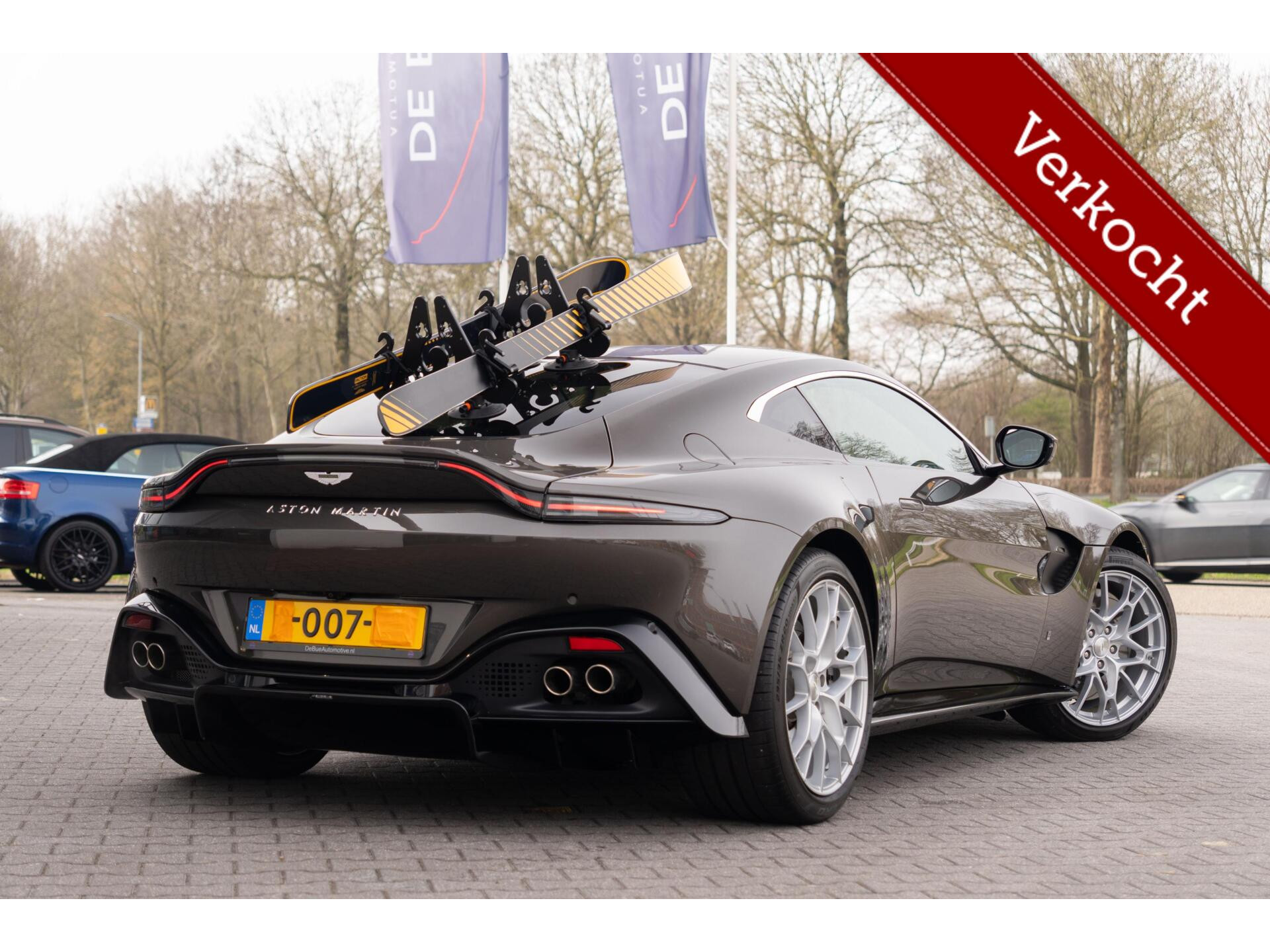 - Ski-opbergruimte: Voor de echte liefhebbers is ook deze Vantage besteld met een bijpassende set ski's en een skirek, precies zoals de 'outriggers' uit de ijsscène.