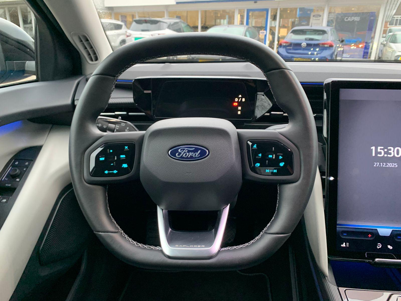 Hij levert uitstekende prestaties en doet dat met zorg voor het milieu. Maar tegelijk is de Ford Explorer ook gewoon een auto die u volop ruimte en comfort biedt. Bent u ook toe aan een auto met elektromotor? Goeie keuze! Doe maar luxe! Neem plaats in de verwarmbare voorstoelen en voel hoe de massagefunctie zorgt voor verfrissende doorbloeding op de lange ritten. De sportstoelen zorgen ervoor dat u goed en comfortabel zit, ook als het gas erop gaat. De bagageruimte is toegankelijk via een comfortverhogende elektrische achterklep. Aan een fijn opwarmertje in de kille dagen is gedacht, in de vorm van een verwarmd stuurwiel. Voorzien van matrix LED-verlichting. De auto dimt precies dat deel van de lichtstraal waar de voor- of tegenliggers in rijden. De overige segmenten blijven aan en verlichten de weg. Verder is de Ford uitgerust met: 21 inch lichtmetalen velgen, extra getint glas, in delen neerklapbare achterbank en LED-achterlichten.
