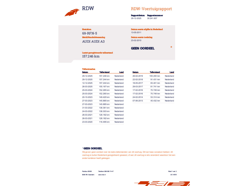 De A3 heeft een topsnelheid van 203 km per uur en bereikt vanuit stilstand de 100 km/u in 9,6 seconden. Het verbruik van deze personenauto is gemiddeld 6,0 liter per 100 km en hij weegt 1270 kg. De APK is geldig tot 31-03-2026 en de wegenbelasting bedraagt gemiddeld € 199,- per kwartaal.
