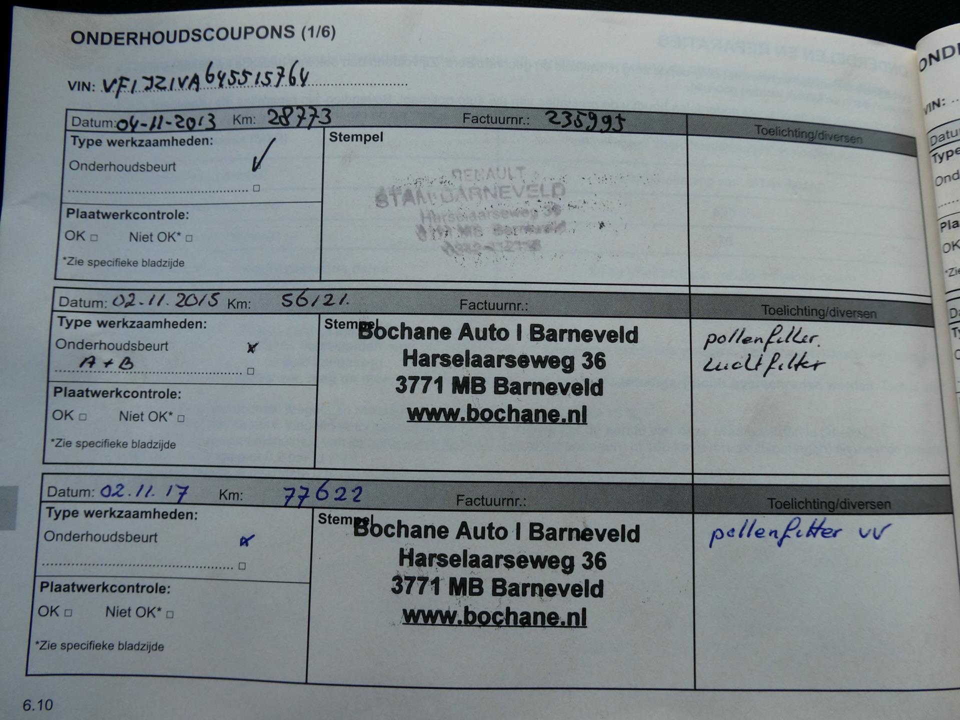Onderhoudsboekjes: Aanwezig