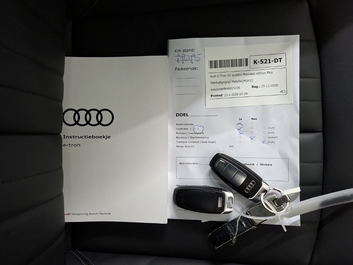 Duurzame mobiliteit is niet langer een ongrijpbare droom. Audi maakt het waar met de innovatieve elektrische e-tron. De prestaties van de elektromotor kunnen de vergelijking met een brandstofmotor moeiteloos aan. De krachtige motor geeft deze Audi uitstekende prestaties. Dat stabiele weggevoel onder alle condities, da's nou een van de voordelen van luchtvering. De auto is voorzien van een mooie en comfortabele lederen bekleding. Behaaglijk onderweg zijn? Als bestuurder geniet u van de verwarmbare voorstoelen. Net als uw bijrijder! Voel die ruimte eens! Lekker veel licht door het elektrisch bediende glazen panoramadak. De achterklep opent automatisch met een druk op de knop. Handig als u met volle handen staat. Tot de uitrusting behoren ook 20 inch lichtmetalen velgen, LED koplampen, adaptief dempingsysteem, donker getint glas achter, LED-achterlichten en verstelbare lendensteunen.