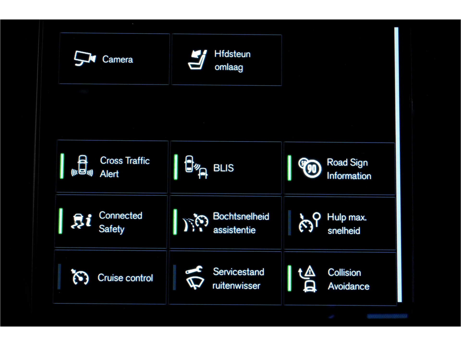 Het rijden met deze Volvo wordt nog meer ontspannen dankzij de innovatieve technieken die onderweg over uw veiligheid waken. Bij de veiligheidssystemen van deze Volvo hoort ook de verkeersbord-detectie. Die leest tijdens het rijden als het ware met u mee en attendeert u op de significante verkeersborden langs en boven de weg. Met het Lane-keeping systeem komt u nooit per ongeluk buiten de rijstrook. Voertuigen of personen buiten uw zicht kunnen gevaar opleveren. De actieve dodehoekdetectie waarschuwt direct. In deze Volvo vinden we verder een City Safety System, forward collision warning system, hill hold functie, brake assist, vermoeidheidsherkenning en bandenspanningcontrolesysteem.