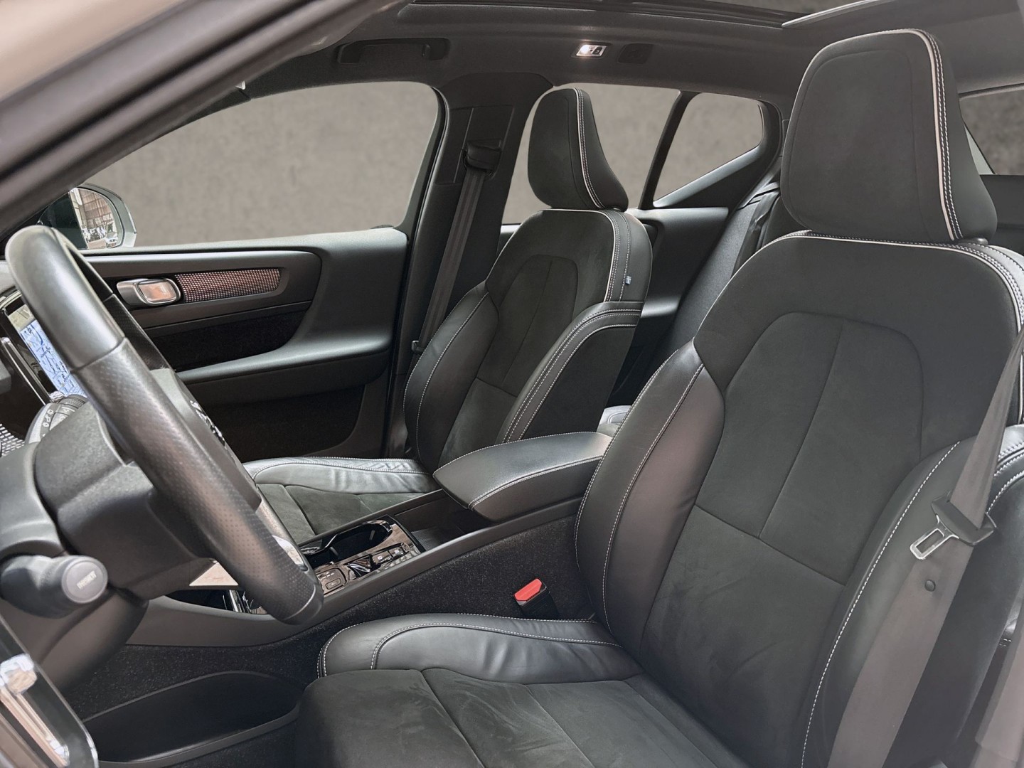 Van uw nieuwe auto verlangt u rijplezier, maar ook optimaal comfort en veiligheid. Daarom is de Volvo XC40 de auto die u zoekt. Goed voor het milieu, goed voor de portemonnee: hybride rijden biedt het beste van beide! Het gevoel van luxe is inbegrepen dankzij het lederen interieur. Doe maar luxe! Neem plaats in de verwarmbare voorstoelen en voel de weldaad in koude dagen. Nooit meer stramme spieren bij het uitstappen: daar zorgen de comfortstoelen voor! De elektrische achterklep opent met een druk op de knop, zodat u gemakkelijk toegang heeft tot de bagageruimte. Het glazen panoramadak geeft ook doordeweeks een vakantiegevoel. Wat een licht en zicht! Koude handen? Da's voorbij met het verwarmd stuurwiel. Pak aan! Natuurlijk behoren 19 inch lichtmetalen velgen, LED koplampen, zwarte hemelbekleding, in delen neerklapbare achterbank, LED-achterlichten en bestuurdersstoel met lendensteunverstelling ook tot de uitrusting van deze complete auto.