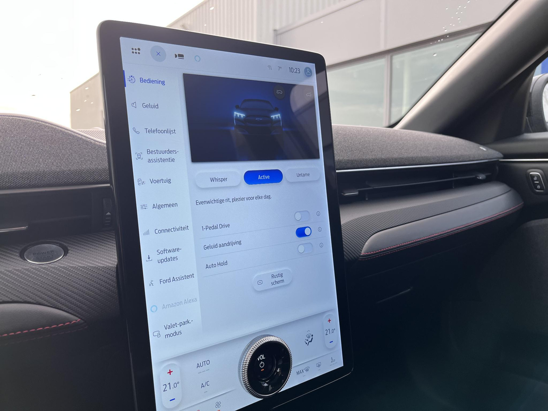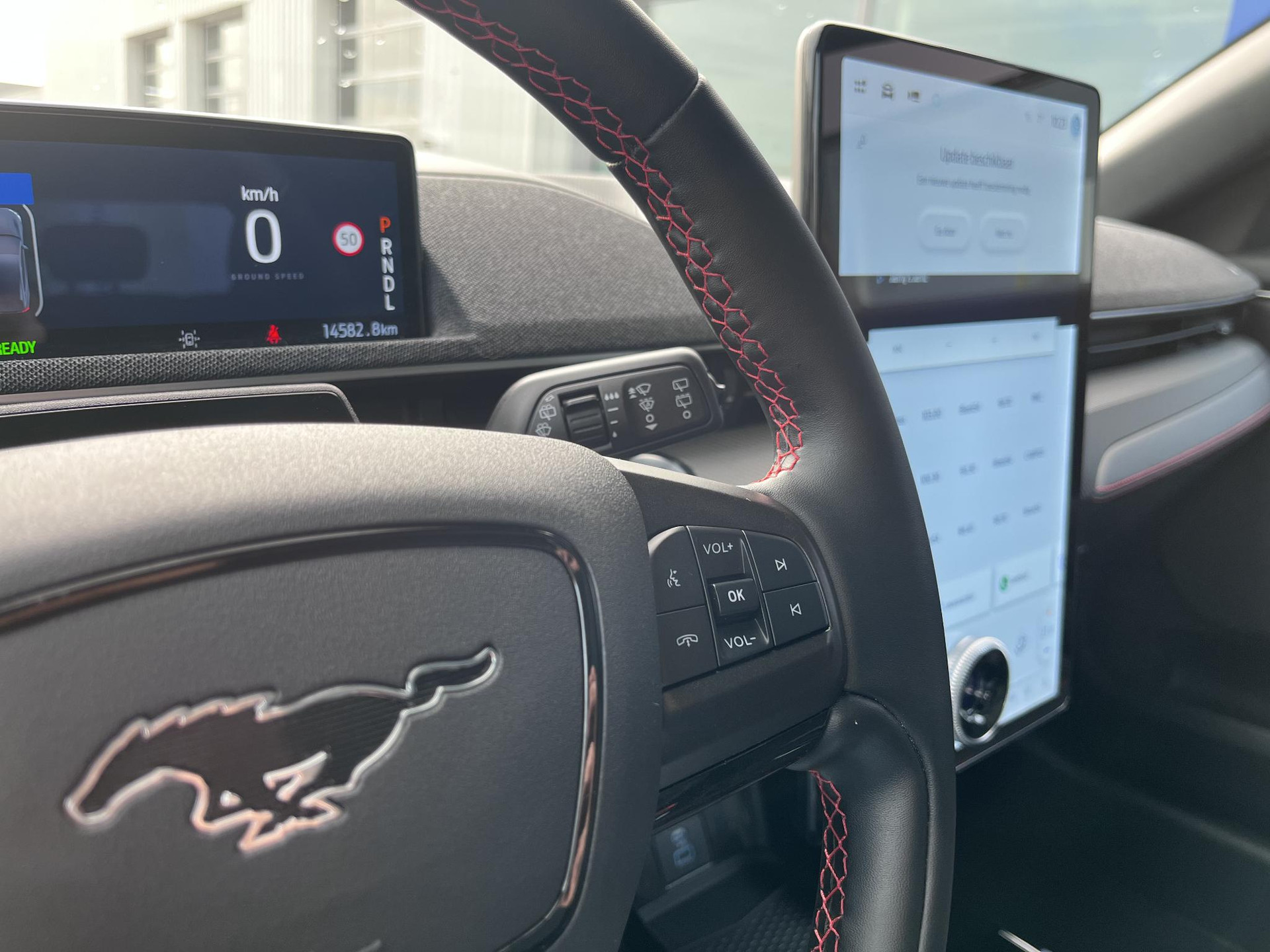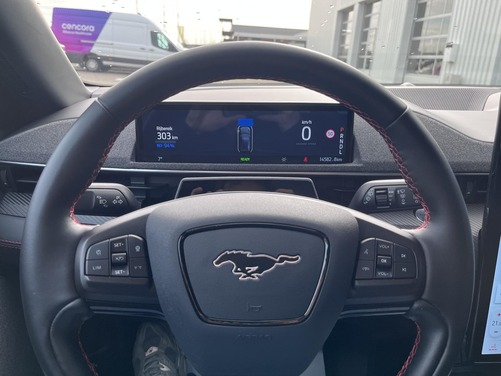 De nieuwste veiligheidssystemen komen in deze Ford Mustang Mach-E samen. Bij de veiligheidssystemen van deze auto hoort ook de verkeersbord-detectie. Die leest tijdens het rijden als het ware met u mee en attendeert u op de significante verkeersborden langs en boven de weg. Het Lane-keeping systeem doet precies wat nodig is: waarschuwen en corrigeren bij onbedoelde overschrijding van de rijstrooklijnen. Deze Ford Mustang Mach-E blijft altijd alert. Zo wordt gebruik gemaakt van forward collision warning. Bij het mogelijke risico op een aanrijding met een voertuig voor u, slaat het systeem alarm. Dankzij veiligheidsvoorzieningen als dodehoekdetectie, vermoeidheidsherkenning, autonoom remsysteem en bandenspanningcontrolesysteem, bent u steeds veilig onderweg.